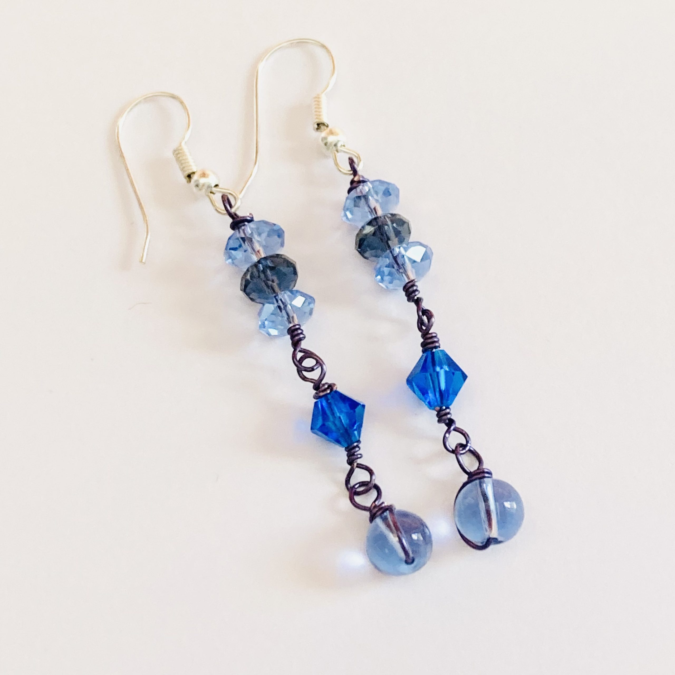 Blue faceted glass beads on silver plated ear wires.