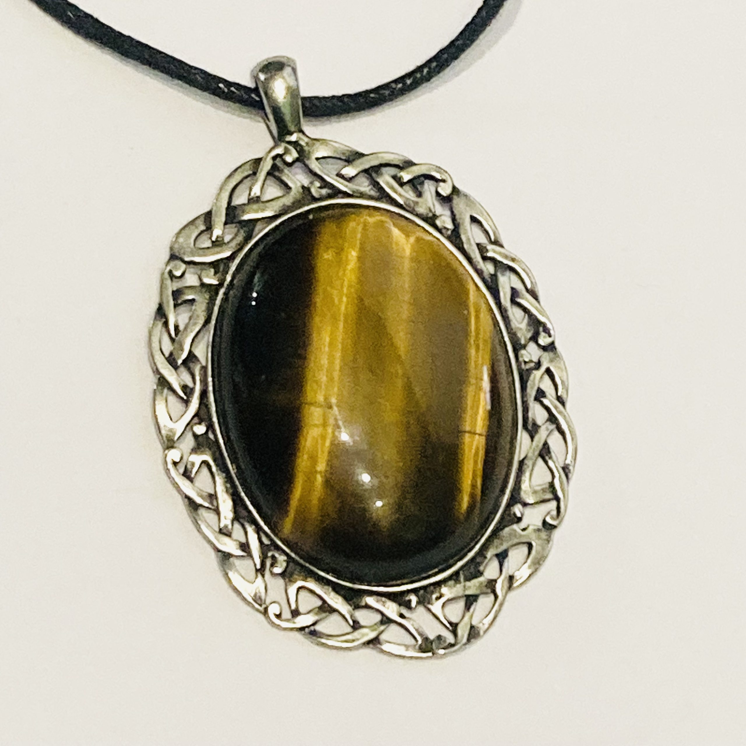 Cast Pewter Pendant with stunning tigers eye stone. Stone measures 40 x 30mm. Finished with black cord.